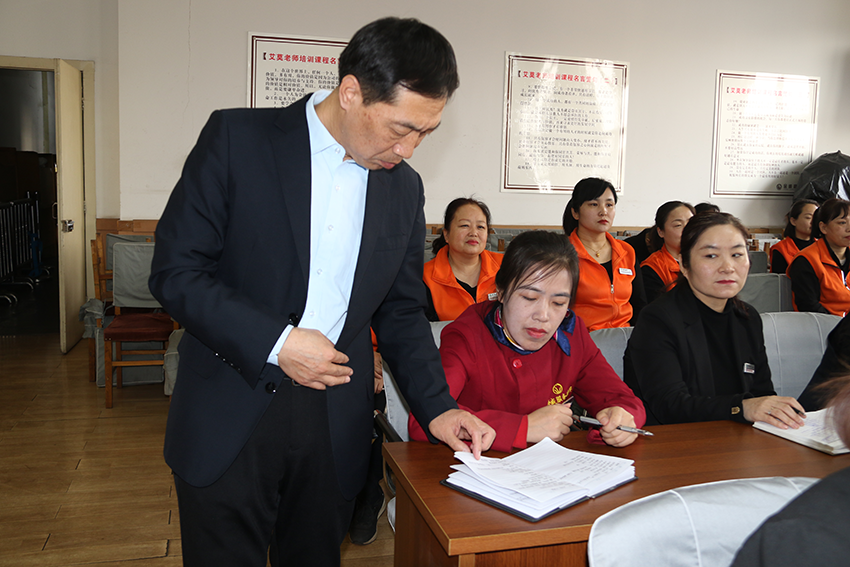 總經(jīng)理秦紀平查閱員工會(huì )議筆記